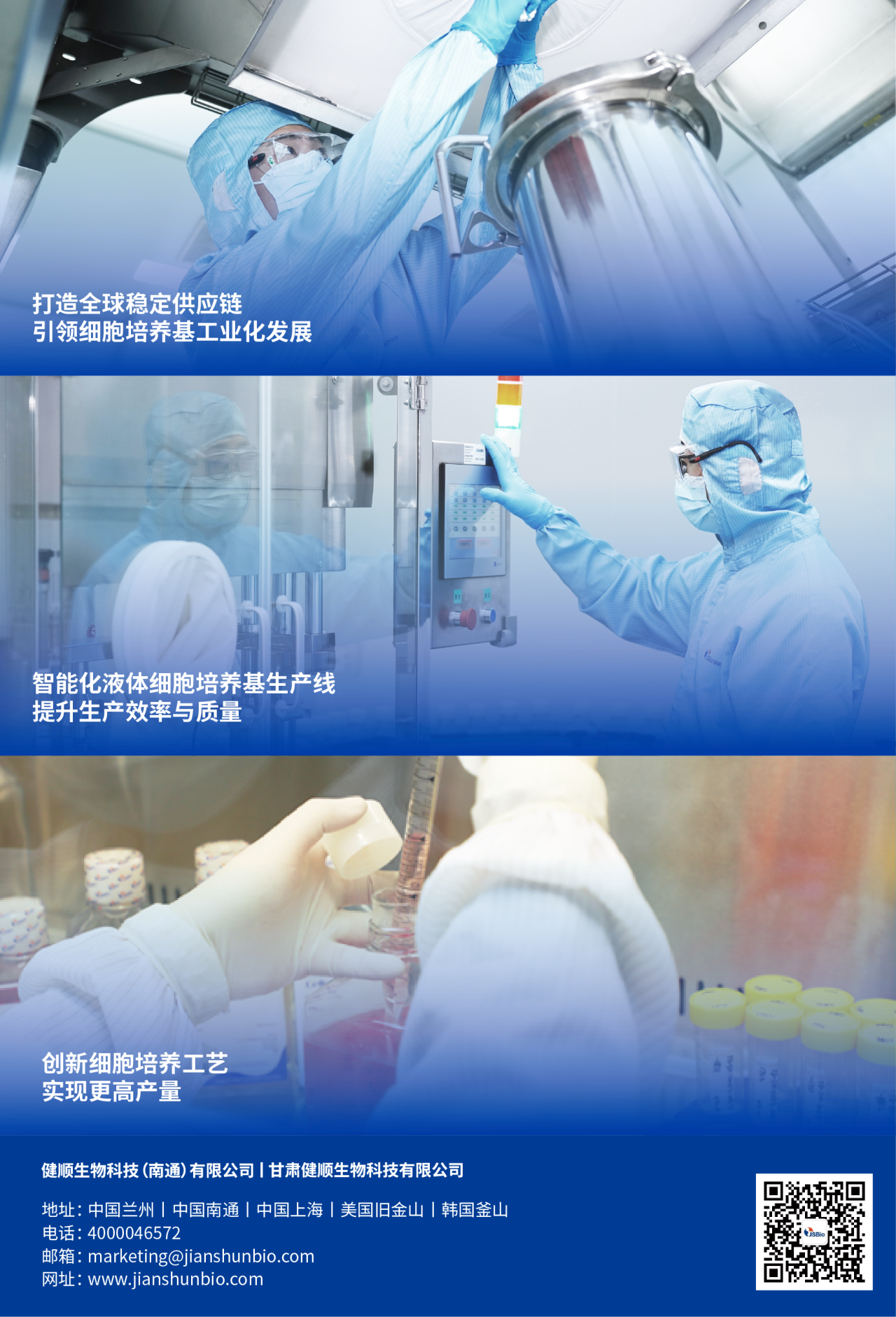 健顺生物团队组建于2011年,专业从事无血清细胞培养基的研发、生产和销售,拥有强大的自主创新及研发能力。除了供应高质量的细胞培养基,健顺生物还为客户提供培养基配方开发、细胞培养工艺开发与放大、培养基配方委托生产、分析检测服务等完整解决方案。公司产品和技术服务主要应用于抗体、细胞治疗、IVD、及人/兽用疫苗行业。